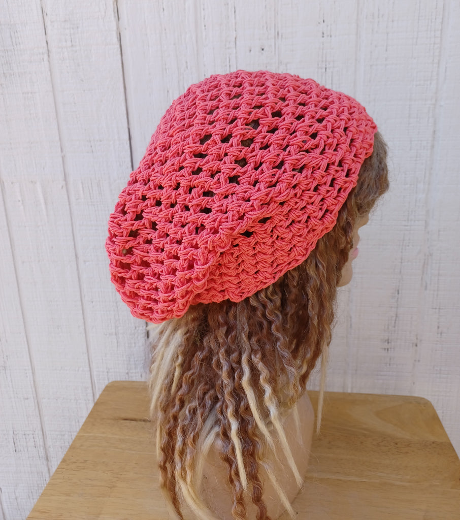Hemp cotton beanie coral slouchy hat Dread Tam Snood hat, crochet summer beanie, woman slouchy hat, man slouch hat, vegan