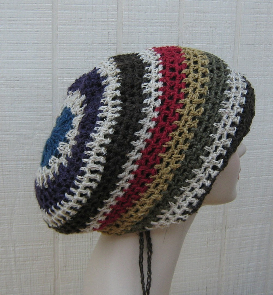 Slouchy beanie, Hemp Wool Tam, Hippie hat, Dread Tam, woman slouchy beanie, man slouch hat, hemp beanie, wool hat, striped slouchy hat, tam
