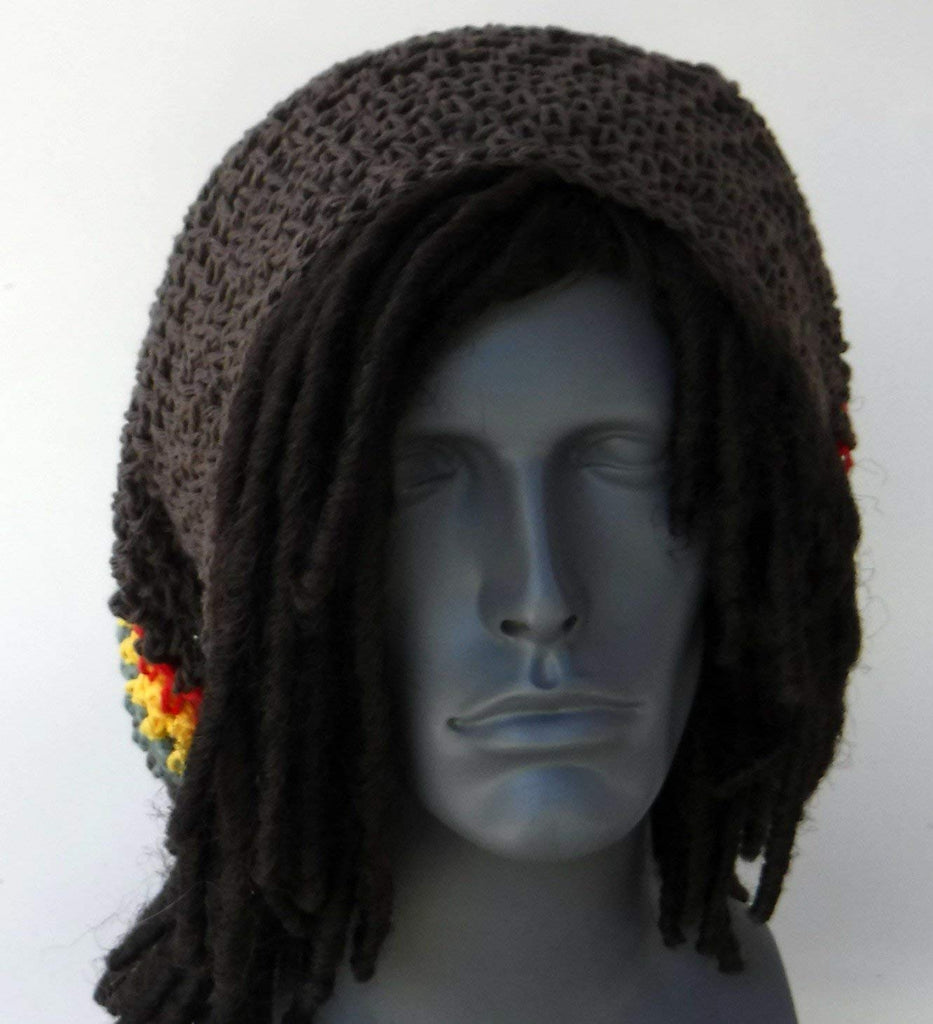 This large dread tam hat with wide crown is available in a darker brown as main color with rasta stripes. Stretchy and suitable for all year around wear. Durable cotton. Length 13". Head opening 22" to 26", cinches tight with tie string Tie-strings can be worn visible or invisible on the inside of the hat. The crown is 13,5" wide with the hat laying flat. Care suggestions (hand washing) come in each package.