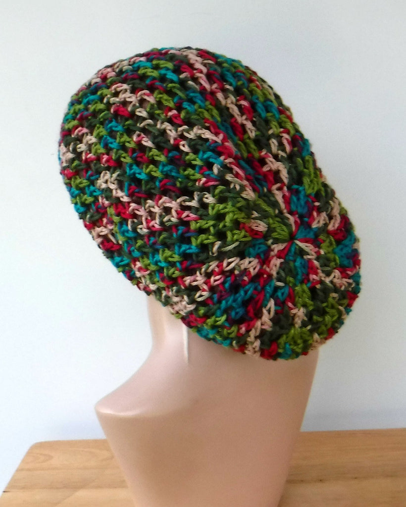 Handmade slouchy beanie in 16 colors custom variegated cotton snood slouchy hat/women men Dread Tam hairnet hat/light summer beanie made to order