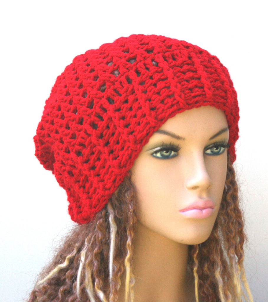 Red slouchy beanie, holly berry red beanie hat, crochet baggy Hat, woman slouchy Christmas red hat