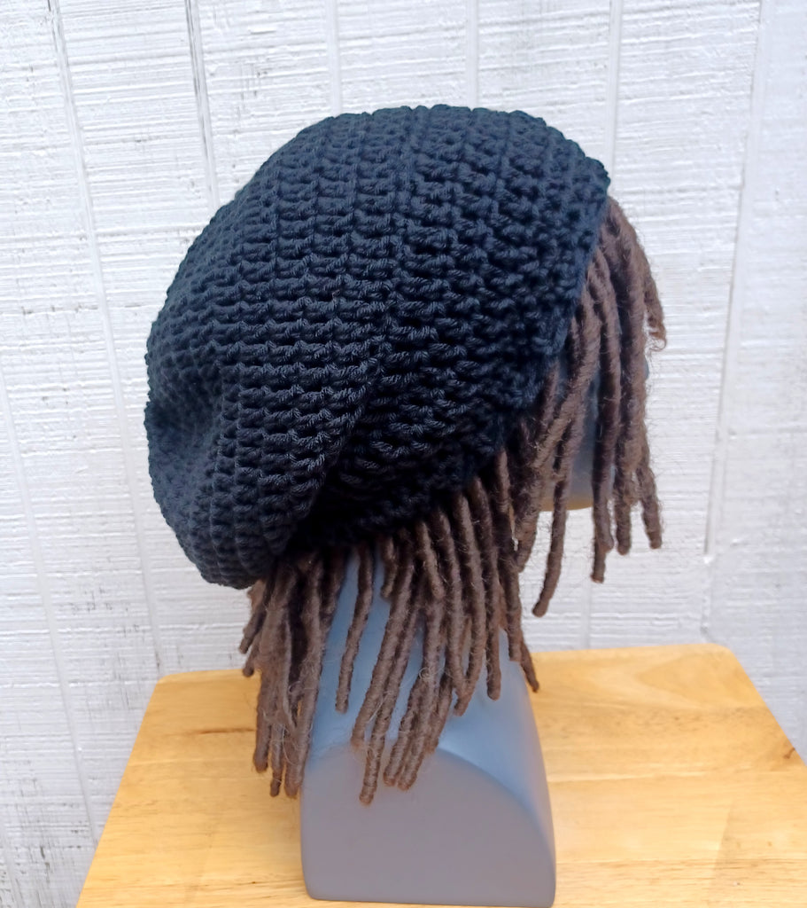Black slouchy beanie medium Tam Dreadlock Beanie Dread Hat handmade crochet unisex