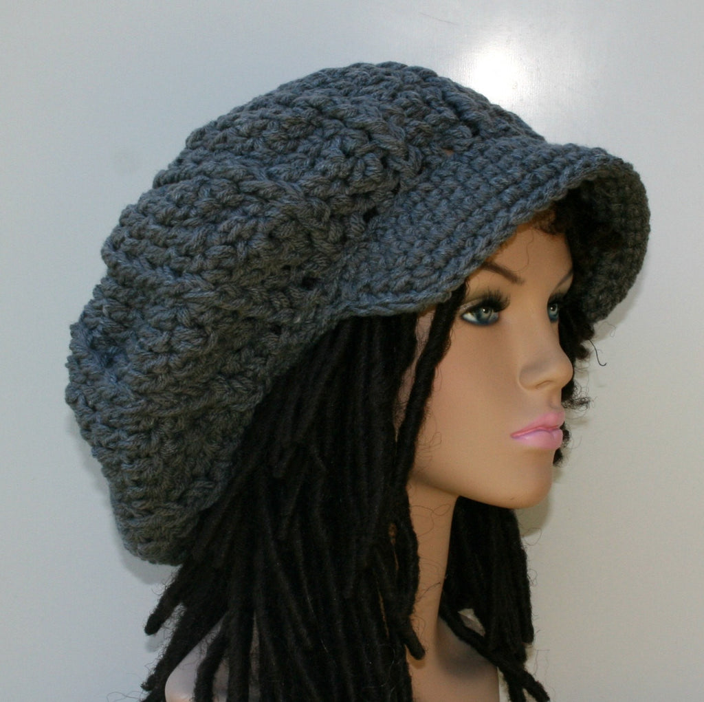 Gray Charcoal Newsboy Cap, dark grey Visor Dread Tam Hat, Hippie Slouchy Beanie cap hat, man, woman