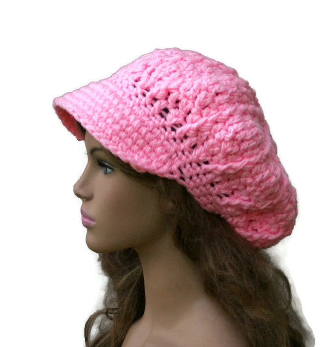 Newsboy hat in Petal Pink Cap Visor Tam Billed Slouchy Beanie hat